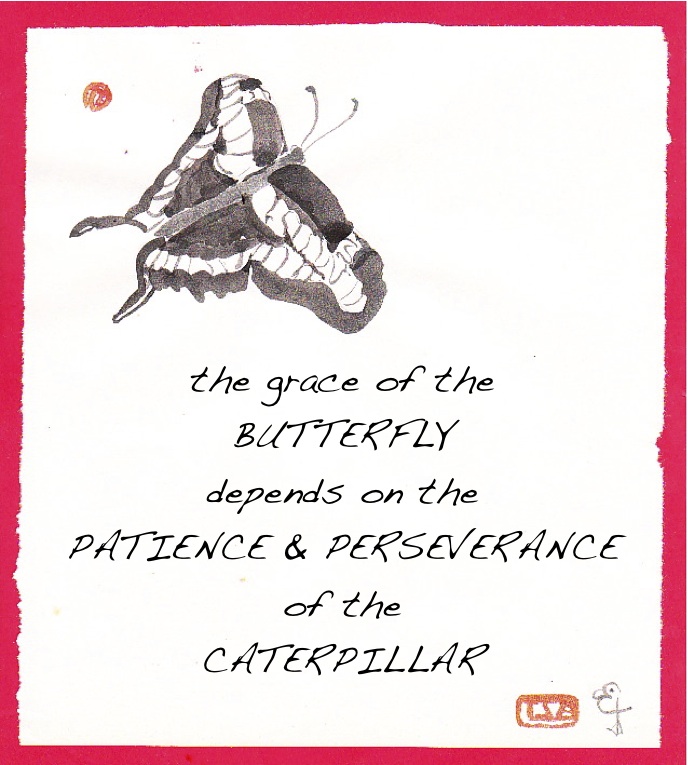 This entry was posted in The Now and tagged butterflies, caterpillars, ink brush meditiation, love, nature, patience, perseverance, spirituality. Bookmark the permalink.
