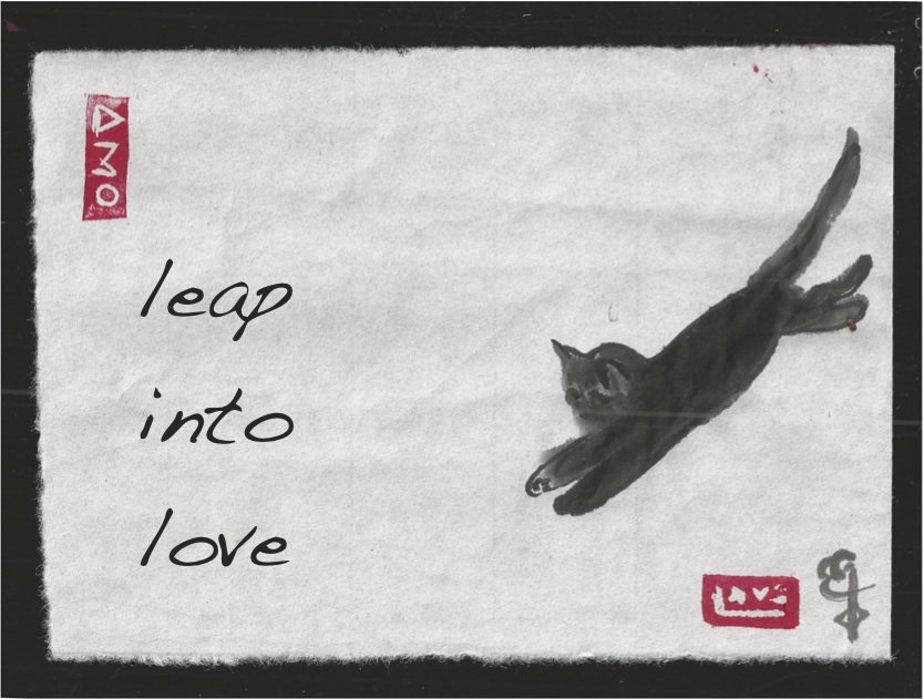 Super cute. I like how the viewer makes a visual “leap” springing from the cat over to the words when reading the image from right to left. 🙂