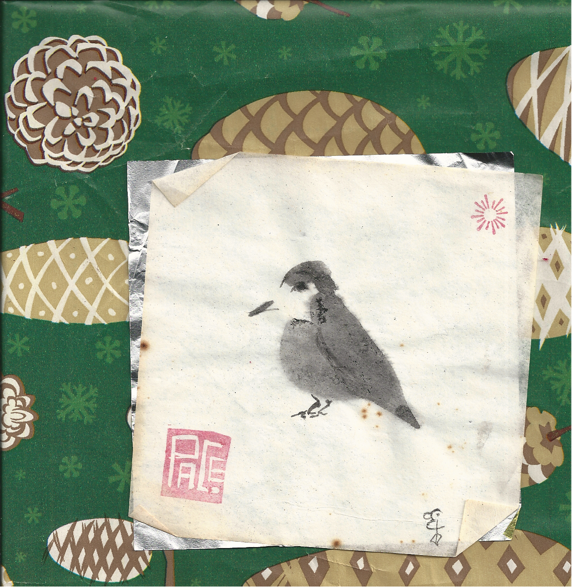 in the silence i sit and a small feathered friend joins me