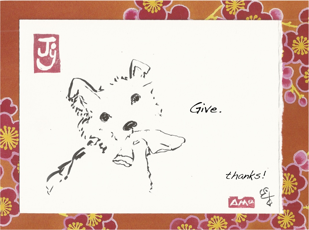 This entry was posted in Animal assisted therapy and tagged cartoon, dog, dog training, eco-chaplaincy, eco-ministry, eco-spirituality, gratitude, humor, ink brush painting, love, nature, poetry, puppy with sock, sumi-e, Thanksgiving. Bookmark the permalink.