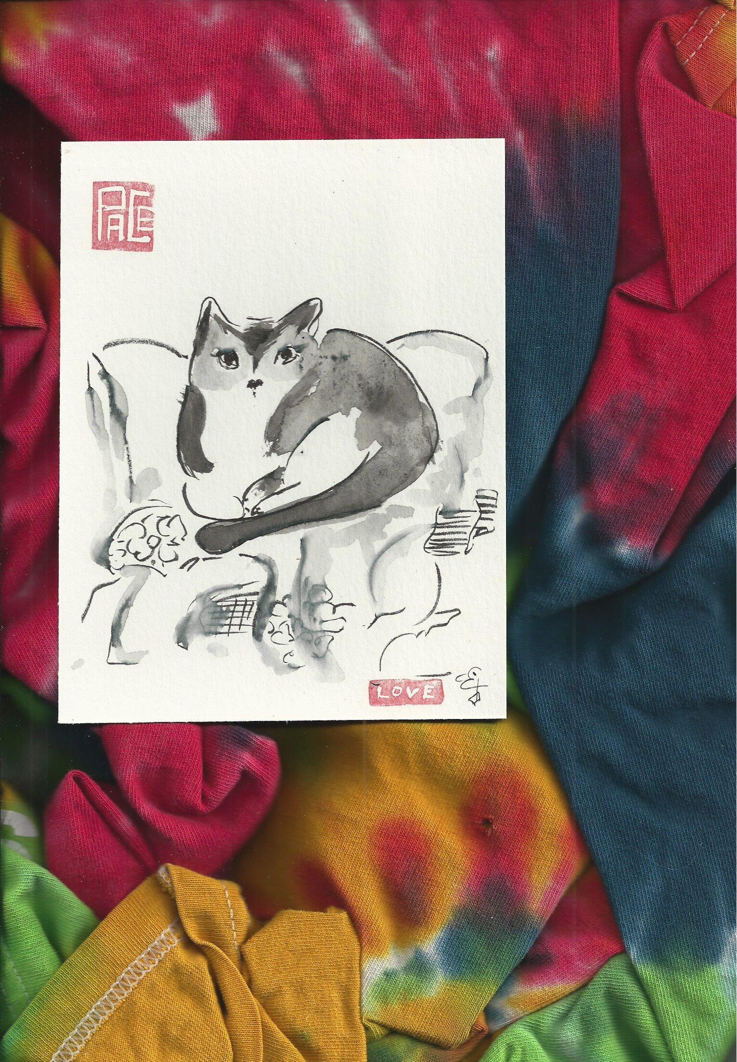 curled up on the fresh laundry.