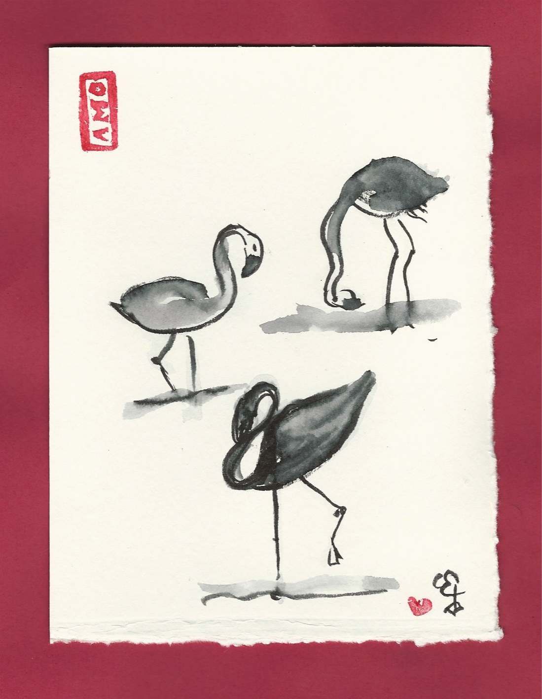 the flamingos stood in the shade
