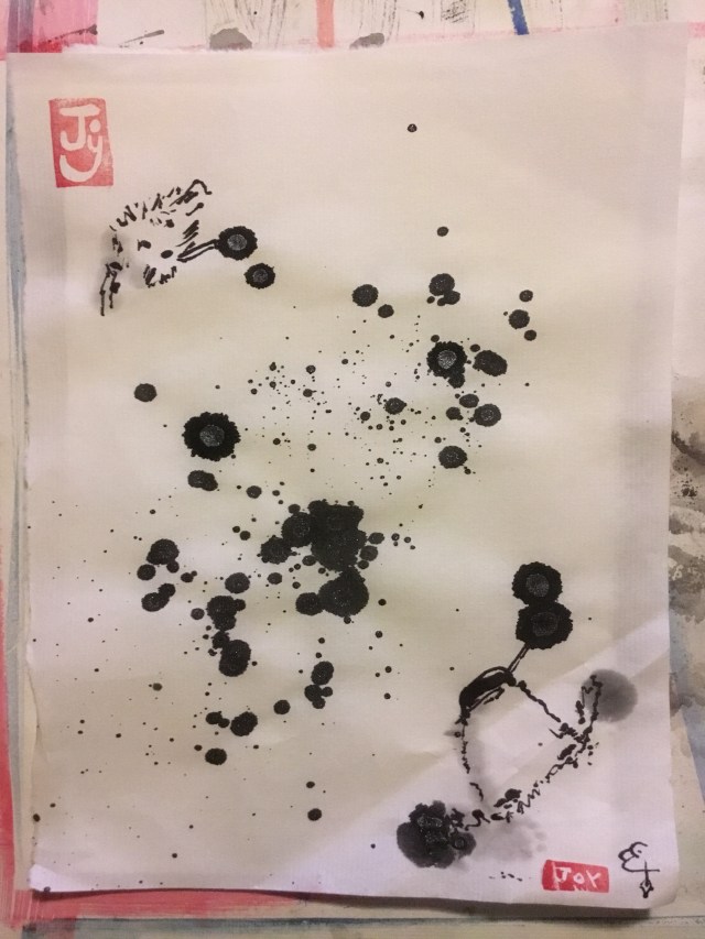 With ink on the sheets, and on the floor,
