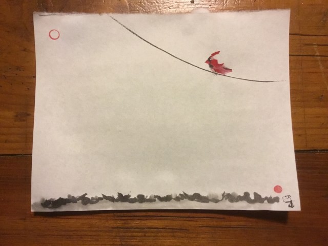 The cardinal came seeking a perch,