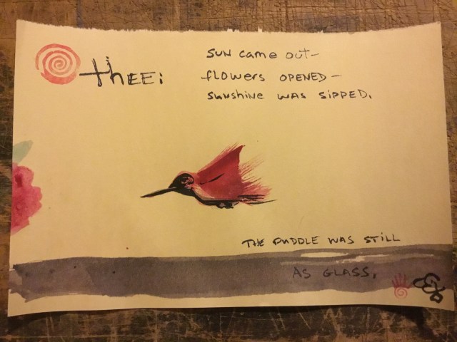 This entry was posted in The Now and tagged after the rain, eco-chaplaincy, eco-ministry, eco-mysticism, eco-spirituality, God, hope, hummingbird, meditation, nature, poetry, spirituality, sumi-e. Bookmark the permalink.