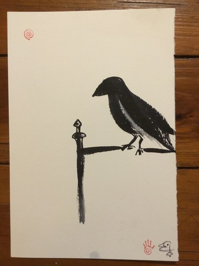 The crow stood on the iron rail of the cupola