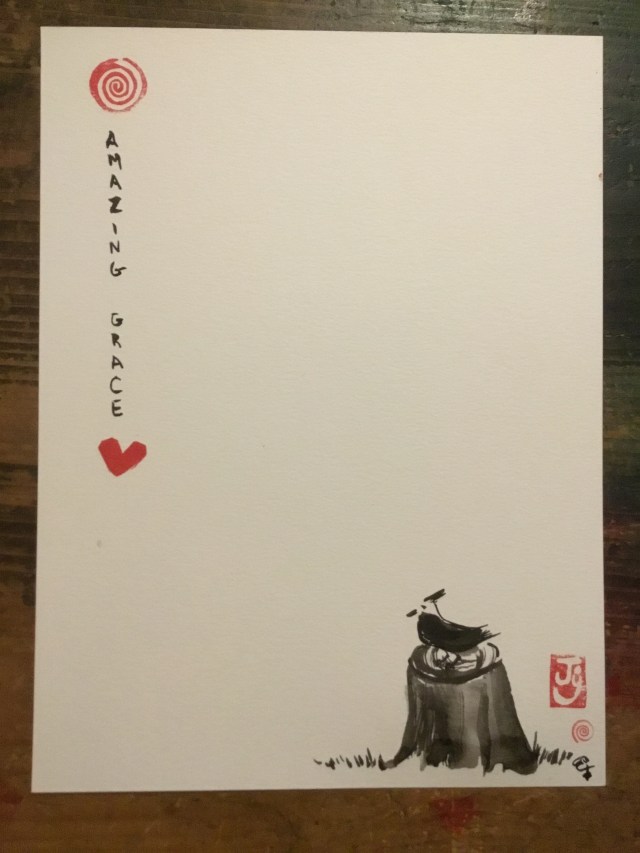 The cardinal came and sat on the stump.