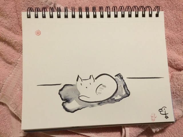 And settles down onto my empty pants lying on the floor….