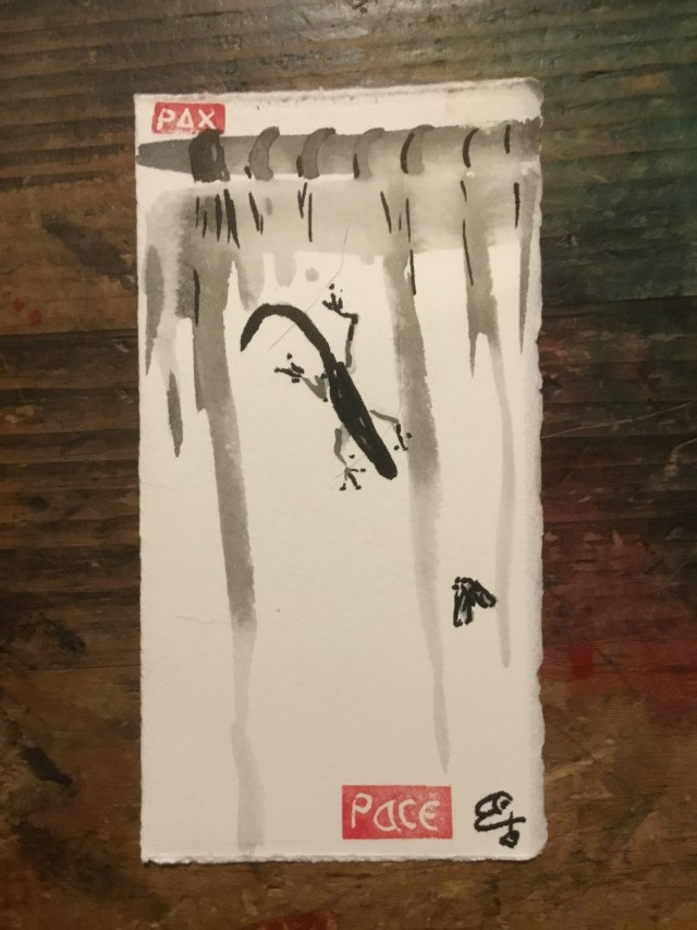 Gecko appeared on the curtain.